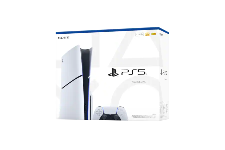 The package comes with the standard DualSense wireless controller, featuring haptic feedback and adaptive triggers for deeper immersion. Its compact, sleek design fits perfectly in any entertainment setup, while maintaining the high-performance capabilities of the original PS5. Perfect for both digital and physical game collections, this 1TB model ensures ample storage for your favorite titles, downloadable content, and updates.