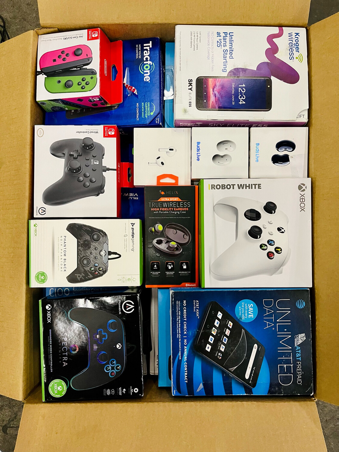 Boxes of liquidated target electronics. Boxes are sold at random and contain a mixed assortment of electronics like Xbox consoles, ps5 consoles, laptops/computers, iPads, Samsung tablets, amazon fire tablets, camera, apple watches, webcams, body cams, dash cams, AirPods, Bose, JBL, skull candy, and more including assorted chargers, phone cases, Power banks, controllers, radios, DVD players, & more. Merchandise is a mix of new, open box, and customer returns. All boxes are sold as is and there is no guarantees, exchanges, returns or refunds. No items are tested & everything is sold as is. Box can contain more or less than the price you pay for it, there are no guarantees, you are buying these at your own risk! However, the chance you get a box with a higher value than what you pay is greater . There is a 25% chance of getting a ps5 in this round of boxes. By purchasing this you agree to these policies