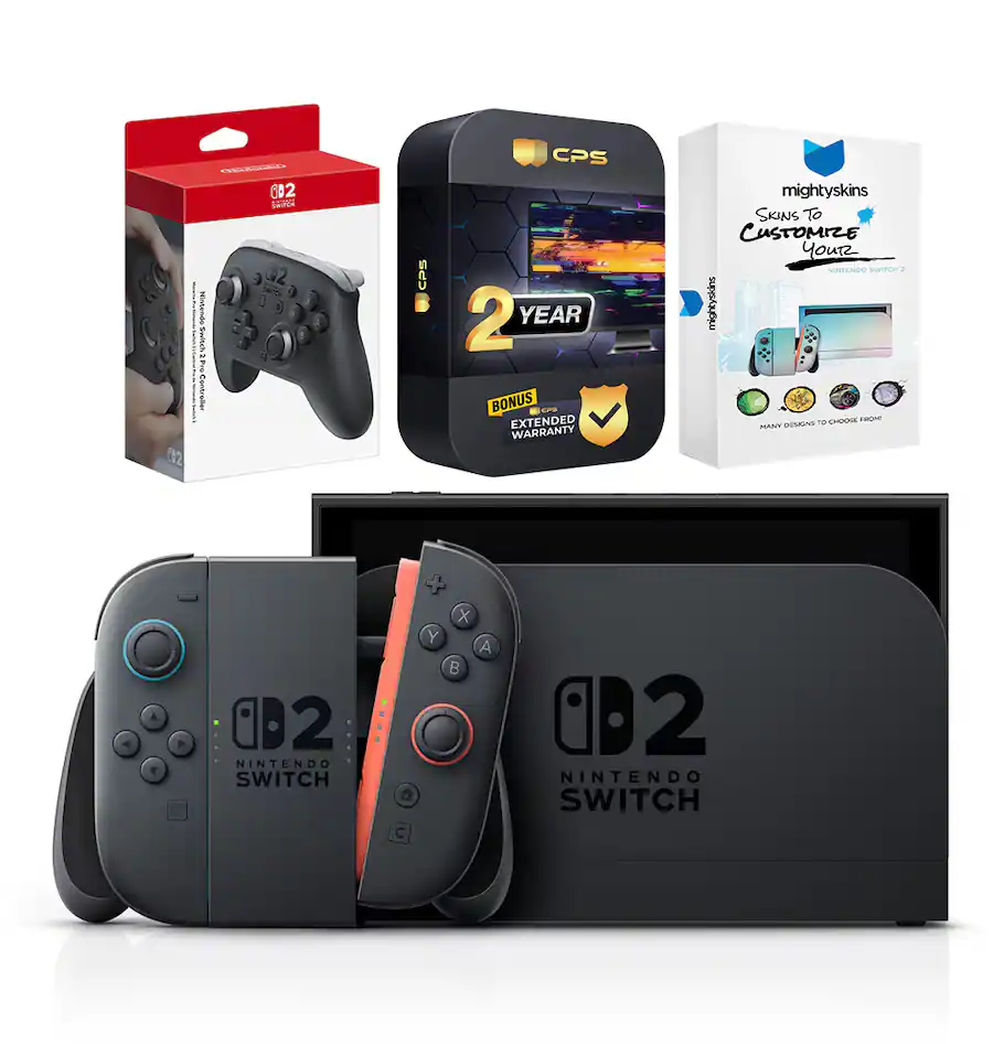 Experience the ultimate gaming adventure with the Nintendo Switch 2 Mario Kart World Bundle. This all-in-one set includes the thrilling Mario Kart World game, a Pro Controller for precision racing, a MightySkins digital code to customize your console, and a 2-year CPS extended warranty for peace of mind. Perfect for both casual and competitive gamers, the Switch 2 offers seamless gameplay, stunning graphics, and versatile play modes – handheld, docked, or tabletop. The bundle comes complete with Joy-Con controllers, dock, HDMI cable, and all standard accessories, making it ready for instant action. Elevate your gaming setup and enjoy endless racing fun with this premium Nintendo Switch 2 bundle.